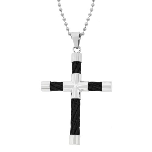 Men's Stainless Steel Cable Cross Pendant with Black Plating, 22'' Best